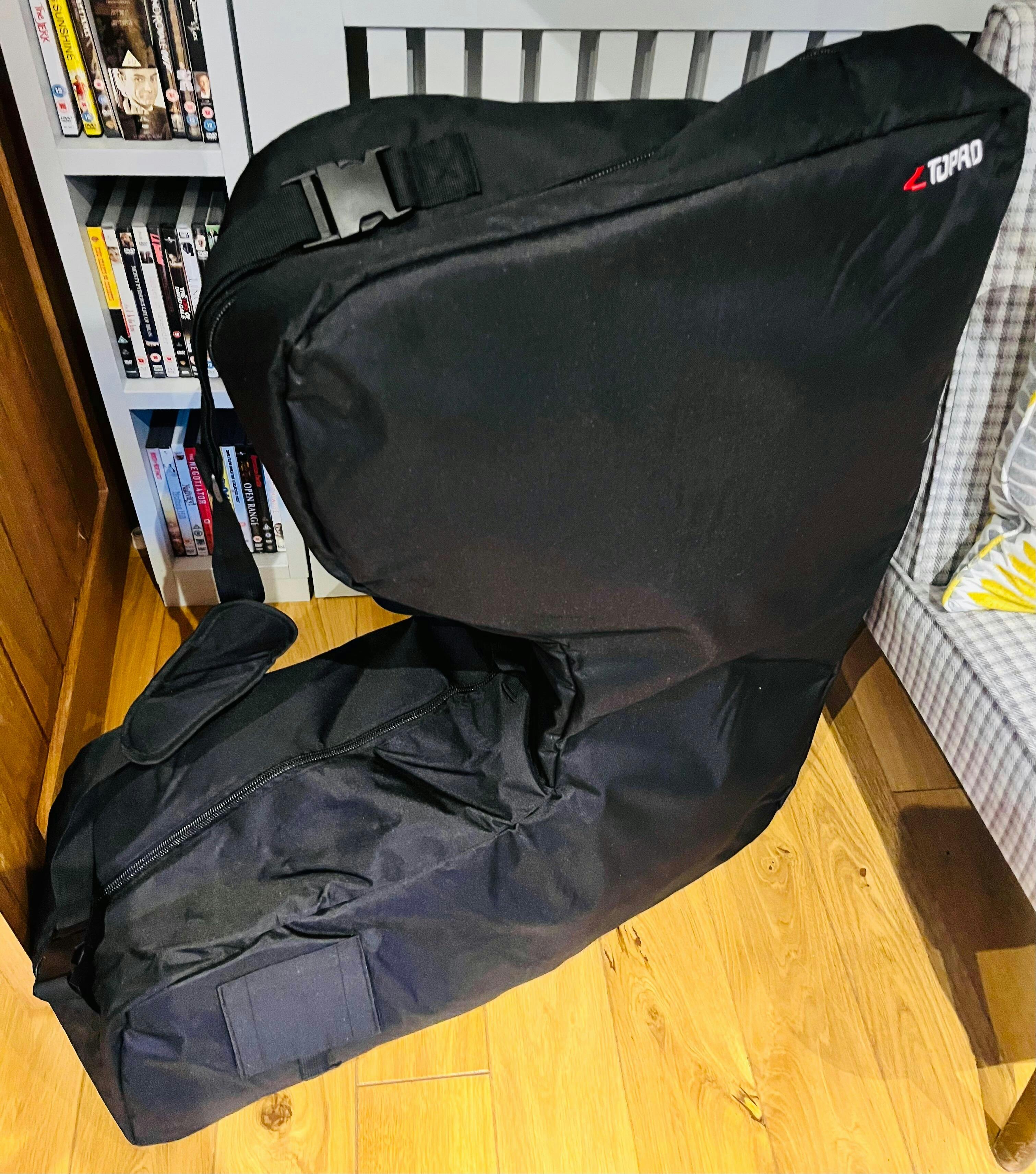 I own a Topro Troja rollator which I have had for a few years. I’m flying this year and want to check it in at the airport. The bag is padded and fits the folded rollator with handles lowered. I can also include the bag that I use on the front. I think my rollator was a small one but there is space at the top should you have the slightly taller one. I am delighted. Delivery was quick and item well packed.
