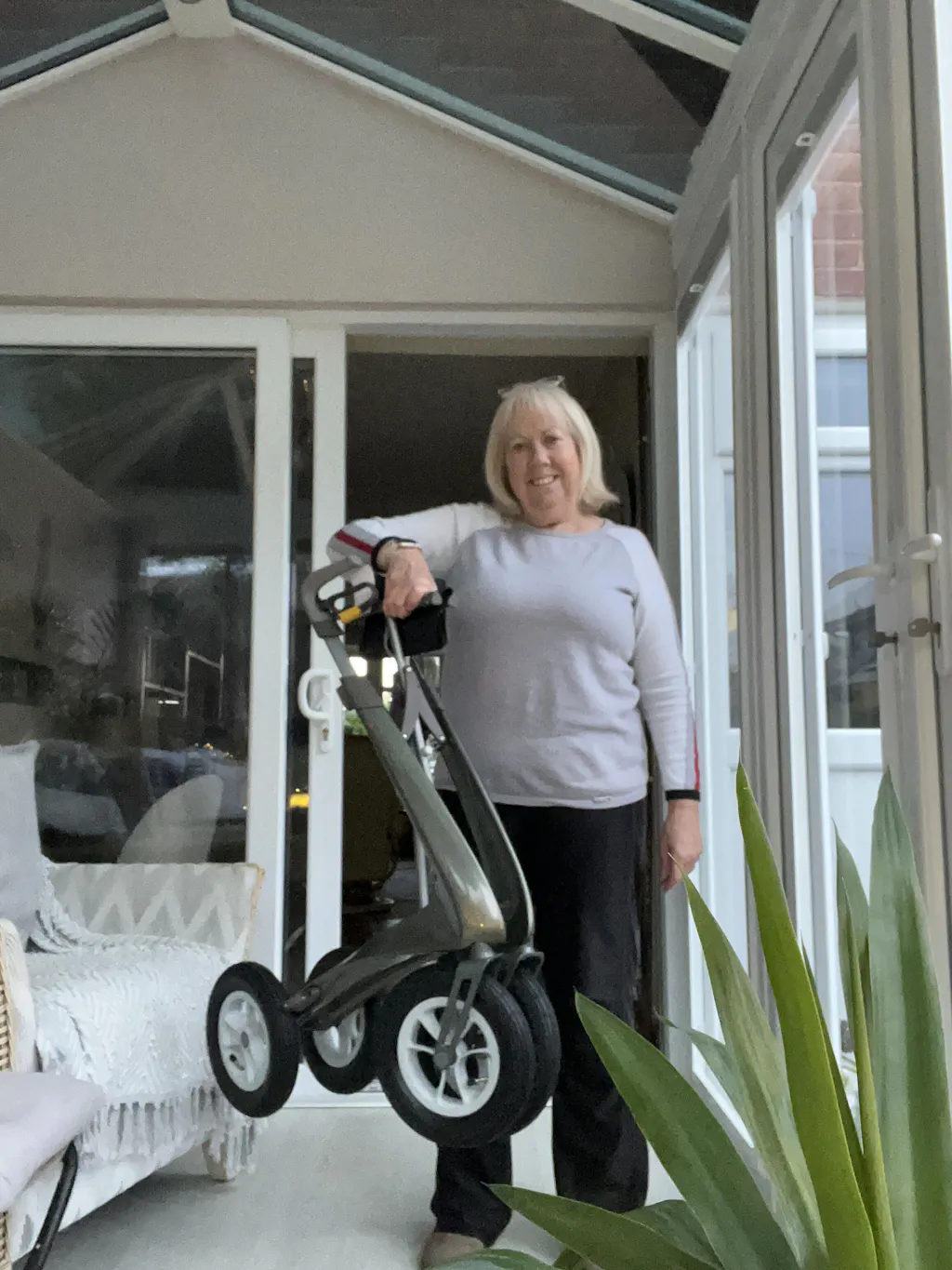 I’m delighted with this Rollator, I can walk further with my dog and walk with friends again.